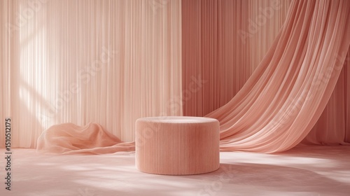 Pink fabric draped product display podium