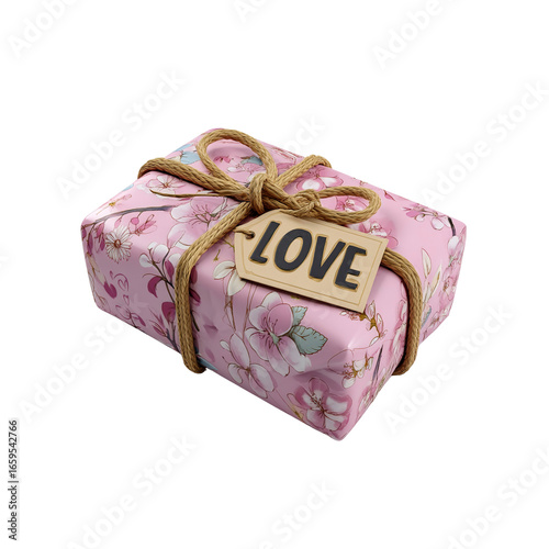 Pink Floral Gift Box with "Love" Tag - Romantic Present for Valentine's Day, Anniversary, or