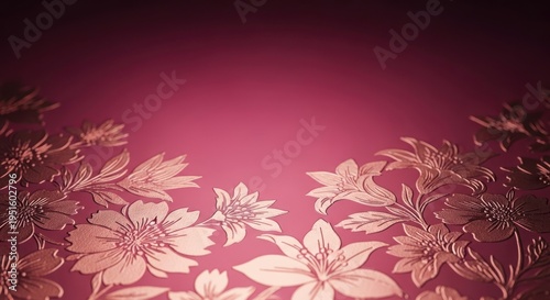 Pink floral pattern background with golden flowers