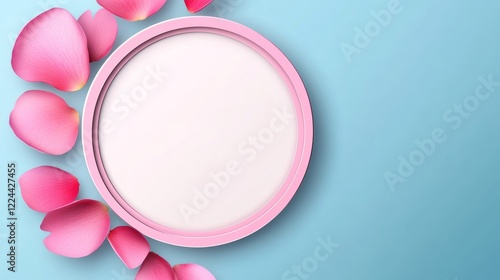 Pink flower with a white background. The flower is surrounded by pink petals. The background is blue