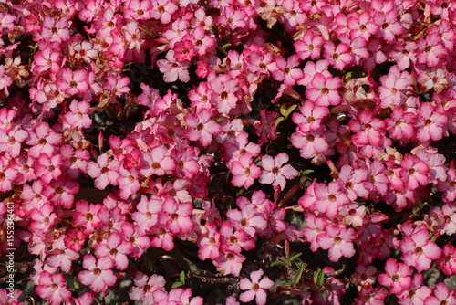 Pink flowers for background. The tree is densely blossoming.