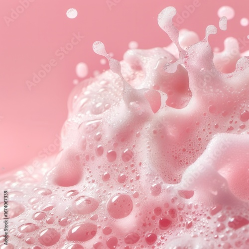 pink fluffy and soft soap suds on pink background