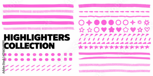 Pink hand drawn highlighter brush strokes and decorative elements collection