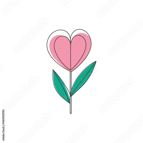 Pink Heart Flower Icon: Love, Nature, and Colorful Vector