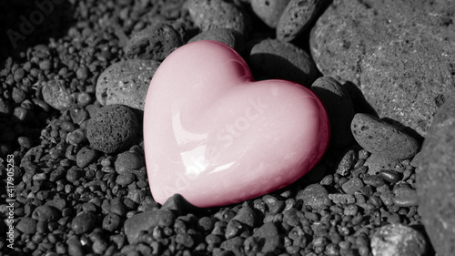 pink heart on a black pebble background