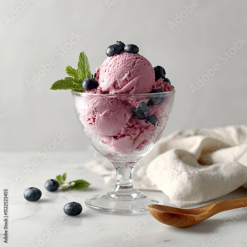 Pink Ice Cream Sundae with Berries and Mint