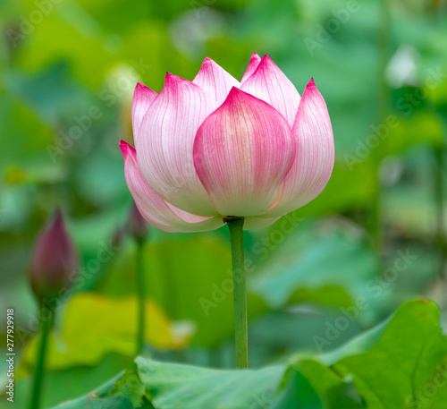 Pink lotus in summer green lotus leaves