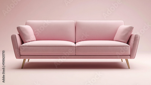 Pink modern sofa, isolated on white background