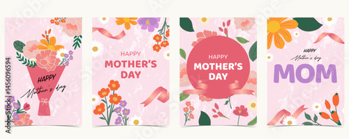 Pink mother’s day background with carnations, leaf, daisy for a4 vertical design