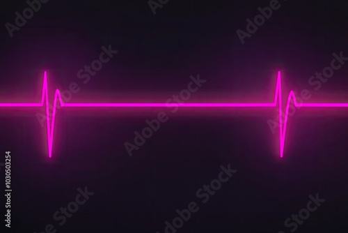 Pink Neon Heartbeat, Glowing Pulse Wave, Electrocardiogram Design, Black Background