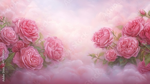 Pink roses bouquet with delicate petals bloom on beautiful floral background of nature