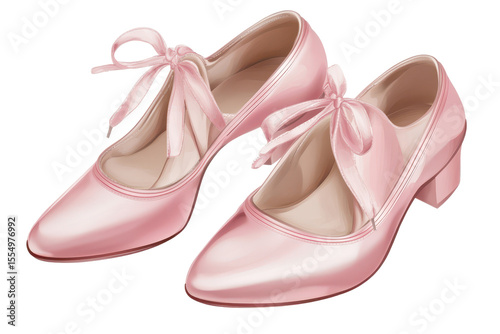 Pink satin ballet shoes with ribbon laces displayed on a white background, perfect for dance performances or special occasions
