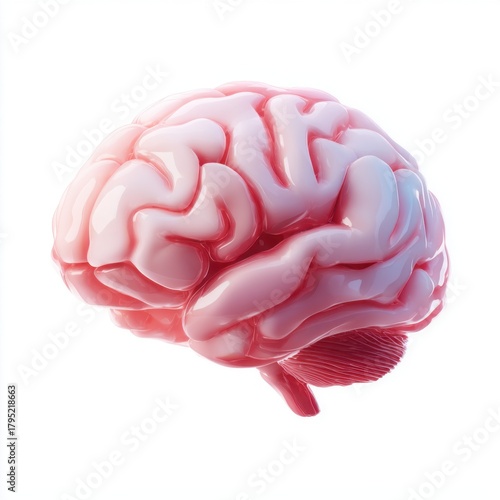 Pink stylized human brain on white