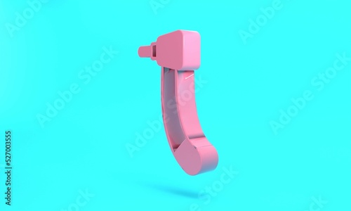 Pink Tooth drill icon isolated on turquoise blue background. Dental handpiece for drilling and grinding tools. Minimalism concept. 3D render illustration