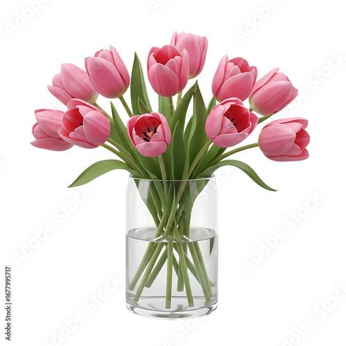 Pink Tulip Bouquet in Glass Vase Spring Flowers, Floral Arrangement, Nature Photography