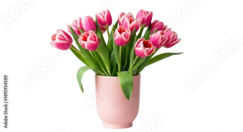 Pink tulips in vase isolated on white background