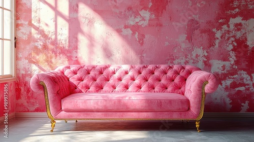 Pink Velvet Sofa Interior Design Vintage Style Furniture Luxury Living Room