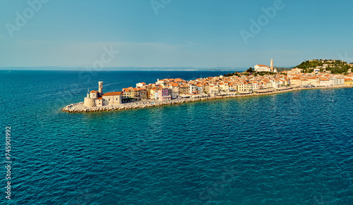 Piran, city in Slovenia, aerial view, peninsula