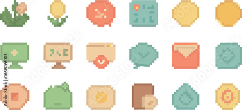 Pixel art envelope and mail icons set with pastel colors and simple design