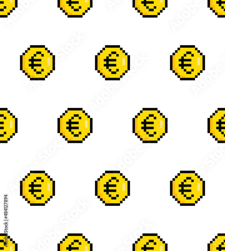 pixel money background Seamless. euro coins texture pattern vector