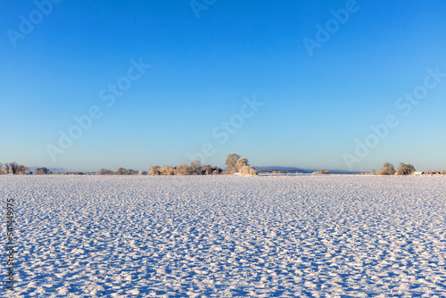 Plain landscape view with snow on a sunny winter day