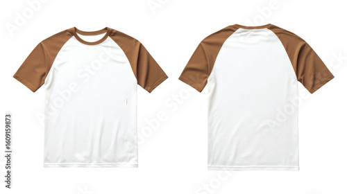 Plain Light Brown Sleeve and White Body Raglan T-Shirt Mockup, Front and Back View, High-Quality Digital Rendering for Apparel Design Presentation on Transparent Background