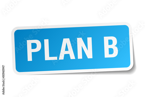 plan b blue square sticker isolated on white