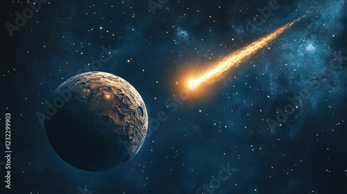 Planet and Comet in Deep Space with Stars and Cosmic Elements