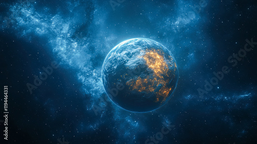 Planet Earth with glowing city lights in outer space
