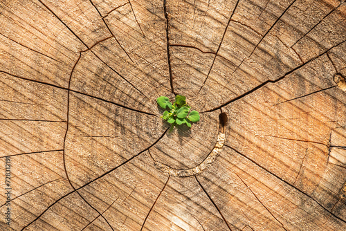 Plant growing in the middle of a cut tree stump