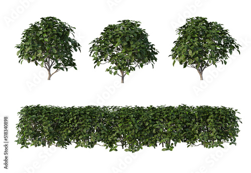 Plants and shrubs on a white background
