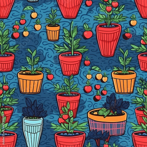 Plants in pots seamless repeat pattern - fantasy colorful cubism, abstract art, trippy psychedelic [Generative AI]