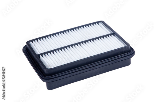 plastic air filter in black, rectangular shape for use in a truck