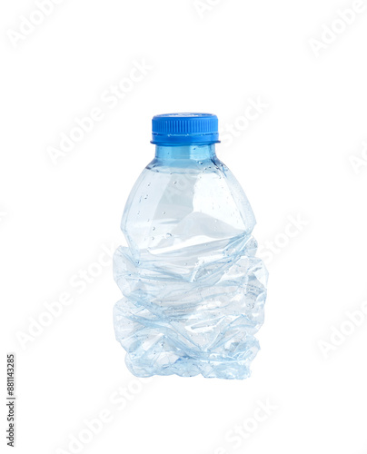 Plastic water bottle isolated on white background. Used twist water plastic bottles..