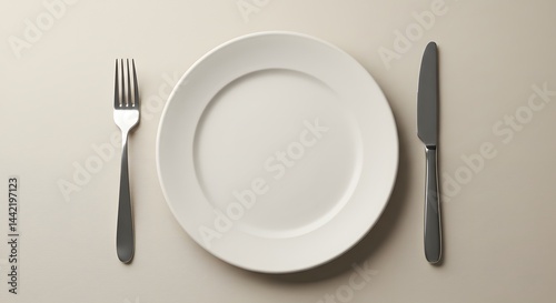 Plate, fork, knife table setting. Utensil mockup