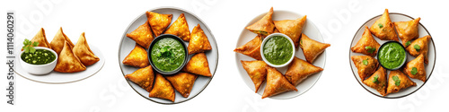 plate of crispy samosas served with vibrant green chutney, perfect for sharing and enjoying. These delicious snacks are ideal for gatherings or as tasty appetizer