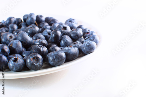 plate with blueberries close-up isolated on white background