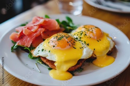 Plate with eggs benedict and smoked salmon