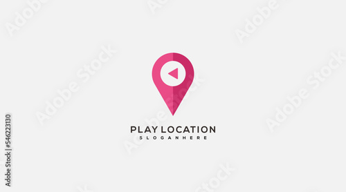 Play button and location pin logo design vector