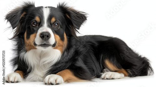 Playful australian shepherd dog relaxing indoors pet photography cozy home environment close-up view