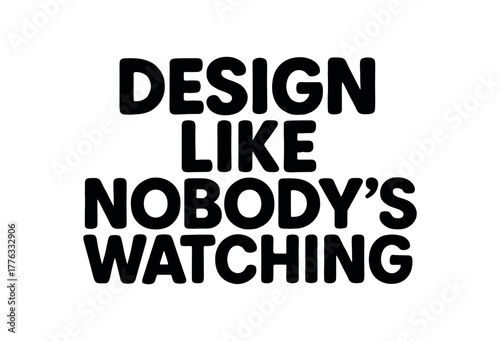 Playful bold typography with text DESIGN LIKE NOBODY WATCHING rounded font isolated on white background clean vector lettering creative humor