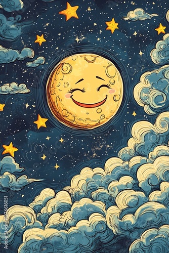 playful clouds with smiling moon