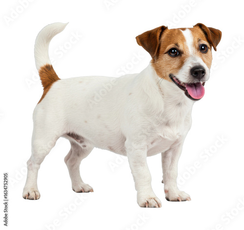 Playful jack russell terrier with brown and white fur standing. Cut out PNG