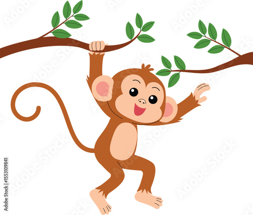 playful monkey hanging on tree branch and try to grab other one, funny monkey cartoon character illustration