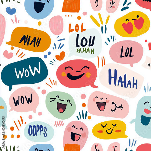playful speech bubbles featuring laughter expressions and cheerful designs as " LOL" " HAHAH". " WOW". " OOPPS"