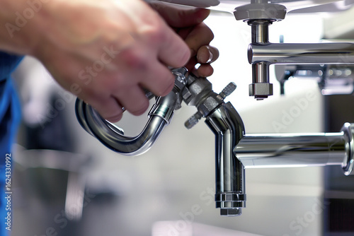 Plumber replacing drain pipes under bathroom sink