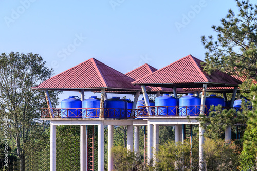 Plumbing tank supply tower with pressure.