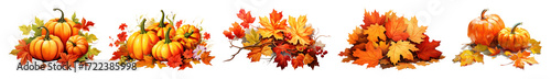PNG Autumn pumpkins and colorful leaves, element set on transparent background