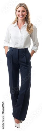PNG Businesswoman professional trousers smiling.
