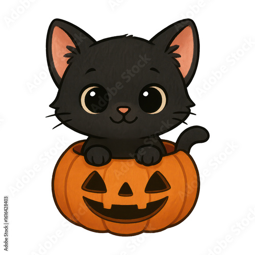 PNG Cute black cat in pumpkin